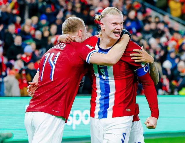 25岁的哈兰德距离世界杯梦想仅一步之遥!北京时间11月14日凌晨,挪威队在欧洲区世界杯预选赛第一组第七轮主场迎战爱沙尼亚。在那六分钟里,索洛托打进两球,哈兰德也打进两球。挪威4-1击败爱沙尼亚,稳居I组榜首,险些锁定2026年世界杯参赛资格。最新的 FIFA 排名中,挪威排名第 29 位,爱沙尼亚排名第 130 位。在这场“虐战”中,哈兰德在六分钟内连进两球。第56分钟,勒森右路传中,哈兰德高高跃起头球破门。第62分钟,努萨左路传中,沃尔夫头球攻门,哈兰德抽射破门。哈兰德世界杯预选赛连续7场进球!哈兰德在世界杯预选赛的7场比赛中攻入14球,在欧洲世界杯预选赛阶段的射手榜上排名第一。 2025-26赛季哈兰德为曼城和挪威国家队打进了30个进球,但只有一个来自点球。自2019年为挪威队首次亮相以来,哈兰德已出场47次,打进53球。这是什么概念?前法国阿森纳和巴塞罗那巨星亨利在为国家队出场123场比赛中仅打进51球。鲁尼是曼联的前英格兰巨星,在为国家队出场的 120 场比赛中攻入 53 粒进球。姆巴佩是法国队的新秀之一,在94场比赛中攻入55球,但他的效率不如哈兰德。在I组积分榜上,挪威净胜球21个,七场比赛后净胜球29个,而意大利净胜球18个,七场比赛后净胜球12个。 11月17日北京时间凌晨3点45分,第一组最后一场比赛由意大利队对阵挪威队。事实上,挪威对于2026年世界杯的参赛资格并不担心。甚至在客场对阵意大利的比赛中如果挪威0-8落败,则有机会以净胜球优势击败意大利,晋级2026年世界杯。只有当挪威以0-9或1-10输掉9个(或更多)球时,挪威才会被意大利超越。于是,4-1战胜爱沙尼亚后,挪威球员在更衣室里疯狂庆祝。他们晋级世界杯已成定局。毫无疑问,挪威将第四次参加世界杯。 1938年,挪威队首次参加法国世界杯,并在一场比赛后回国。 1994年世界杯,挪威小组赛就被淘汰。 1998年世界杯,挪威迅速晋级16强。28年后,以哈兰德、索洛特和厄德高(伤愈)为首的挪威黄金一代等待着世界杯。