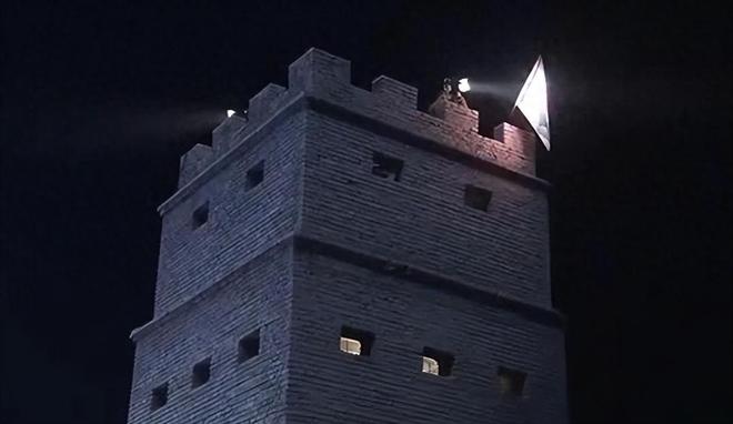 抗日战争剧中,探照灯被放置在日军的炮塔上。