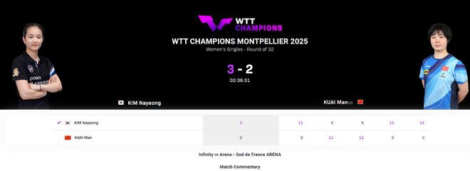 2025年WTT蒙彼利埃锦标赛1/16女单决赛中,国乒选手蒯满以2-3不敌韩国乒乓球选手金娜英。 5场比赛比分:[8-11、11-5、11-6、6-11、5-11]。在决胜局中,快漫输给了金娜英。最终,世界排名第四的也爆冷了。最悲惨的是,四名国乒选手首轮就被淘汰。 20岁的金宁世界排名第36位,蒯曼世界排名第四。如果没有孙颖莎和王曼昱在场,蒯曼被认为是蒙彼利埃的第二热门。最终,世界排名第36的球队出人意料地驱逐了世界排名第4的球队,一号种子和二号种子一起被淘汰,真是不可思议。奎曼以2-1的大比分领先。两人第四局,快曼从2-5落后变成6-6领先。每个人都认为奎曼只会赢一次。然而快曼直接送出一波0-5,让金宁将比赛拖入决胜局。最后的比赛更加残酷。比分4-4后,快曼连续失误,金娜英将领先优势扩大到7-4。快曼打到5-7,直接送出一波0-4。奎曼在连续第二场比赛的下半场倒下了。陈幸同0-3负于索科斯,蒯曼2-3负于金宁英,陈远宇1-3负于张玉珍,温瑞波1-3负于吴荣成。四名国乒选手全部遭遇失败。世界第三、第四的女子国乒队遭遇连败。这合理吗?以下是球迷们的感言: 1. 快曼2-1领先的时候我觉得很好。我越看越惊慌。我们的第一场胜利会在哪里? 2. 蒙彼利埃有毒吗?它是做什么用的? 3.新的一天,新的开始,又一次失败,蒙彼利埃做错了什么:4.我不明白,我真的不明白,这些都是女足主力的国家乒乓球队。金宁和修科斯非常幸运。他们击败中国队并不容易。蒙彼利埃这次真的很奇怪。